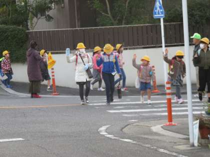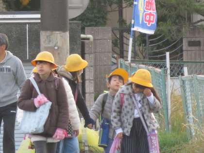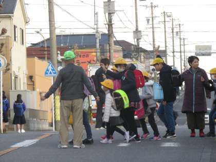 今朝も冷え込んでいます。保護者・地域の方に見守られ登校です。