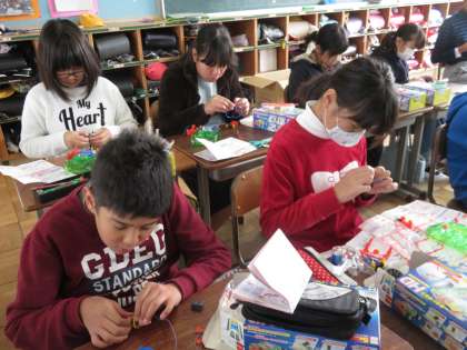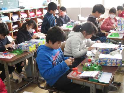 電流と電磁石について、調べるための実験器具の作成をしています。次の授業では、実験できるかな?
