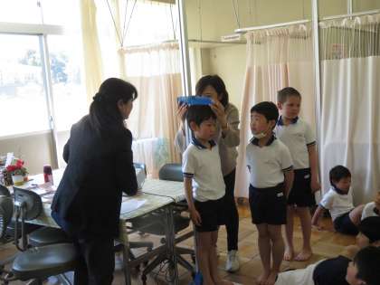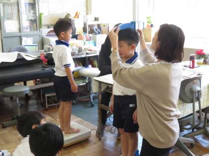 身体測定を行いました。身長は担任の先生が、体重は保健の先生が測定します。大きくなったかな?