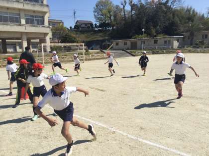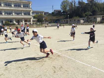 走る順番を決めて、何度もバトンを渡す練習をしました。
