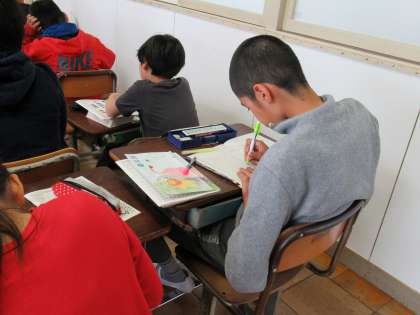 国語で詩の学習をしています。言葉に注目し、作品に込められた思いについて考えていました。
