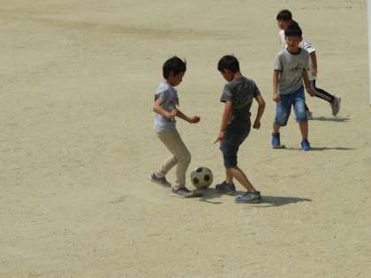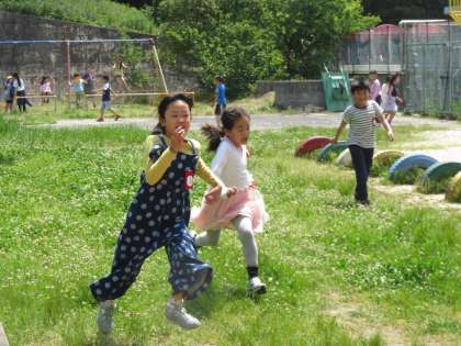 元気に遊んでいます。楽しく運動することは、大切ですね。