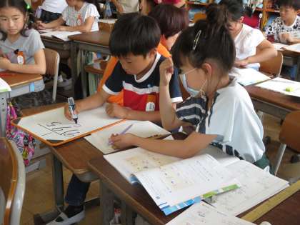 68÷2、83÷4の筆算の仕方について考えました。みんな一生懸命、考えていました。
