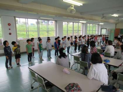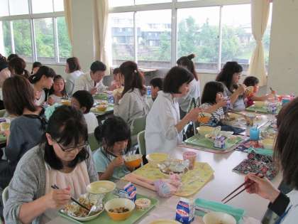 今日は1年生の親子給食会でした。実行委員を中心に会の進行を行いました。おうちの方と一緒に食べる給食は、いつも以上においしかったですね。