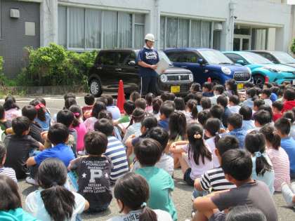 3時間目に地震避難訓練を行いました。机の下に頭を隠す第一次避難、運動場に避難する第二次避難、津波の襲来を想定して体育館横の駐車場に避難する第三次避難の順で行いました。地震はいつ起こるかわかりません。自分の命を自分で守れるように、日頃から家族でも話し合ってみてください。