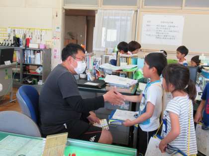 今日は、あくしゅだいさくせん2回目です。前回は会えなかった先生にも、上手に自己紹介ができました。シールはたくさん集まったかな。