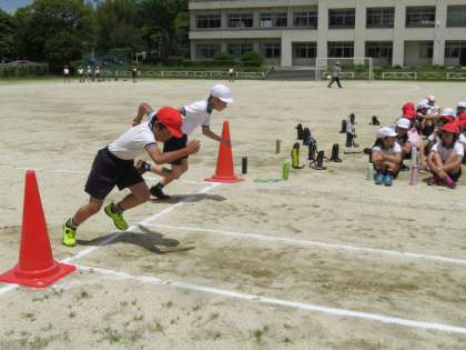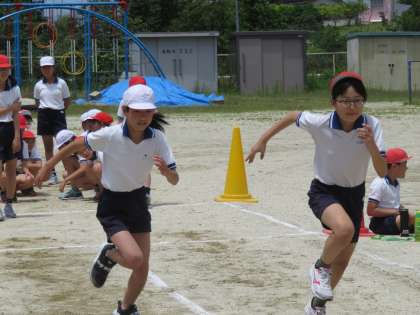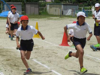 50M走の様子です。高学年になると、走り方も力強いですね。