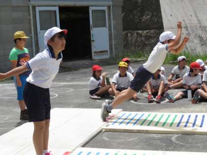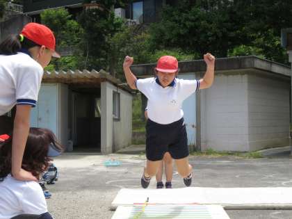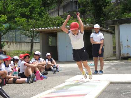 対幅跳びの様子です。去年と比べて記録はどうかな?