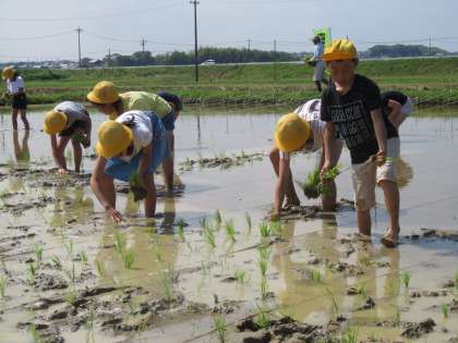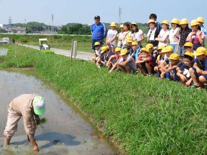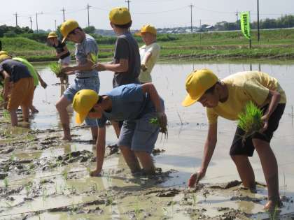 南粕谷の美しい自然を守る会の皆様のご協力により、5年生が田植えをしました。土に足を取られながらも、一生懸命取り組んでいました。南粕谷の美しい自然を守る会の皆様、ありがとうございました。
