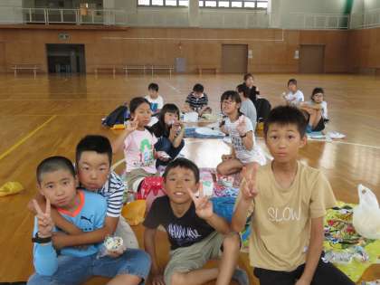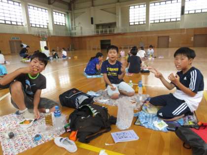 レクリエーションで楽しんだ後は、昼食タイムです。愛情のこもったお弁当を、友だちと仲よく食べました。