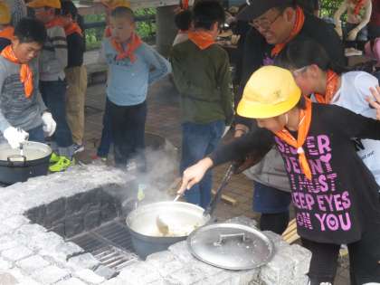 カレーの鍋も火にかけられ、おいしそうに煮立ってきました。