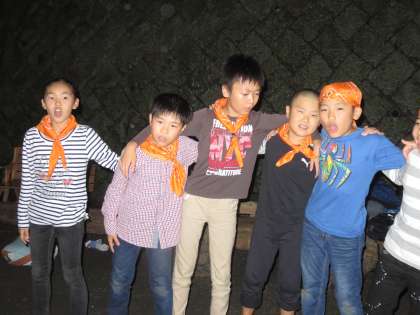 キャンプファイヤーの締めくくりに、全員で肩を組んで「今日の日はさようなら」の合唱です。素敵な素敵な時間でした。5年生のパワー、すごいです。