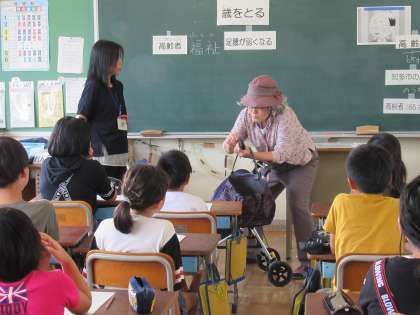 知多市社会福祉協議会から講師の方をお招きして、高齢者福祉について学びました。これからの生活でどんなことに気を付ければよいか、考えることができました。
