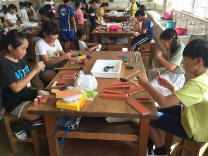 木に色を塗り終えて、いよいよ組み立て作業が始まりました。