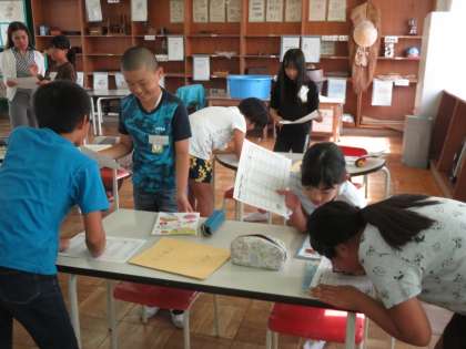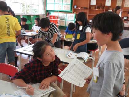 友だちと英語で会話をします。みんな、上手に会話をしていました。