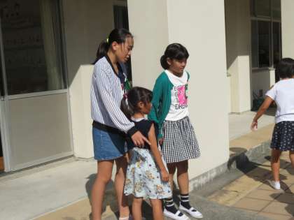 やさしい6年生のお姉さんたちが、1年生のところに遊びに来てくれました。