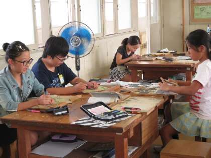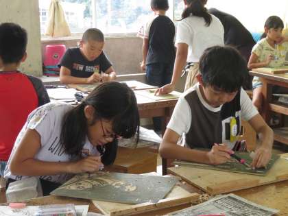 浮世絵の版画を作成しています。試し刷りをする子も、出てきています。完成は間近です。