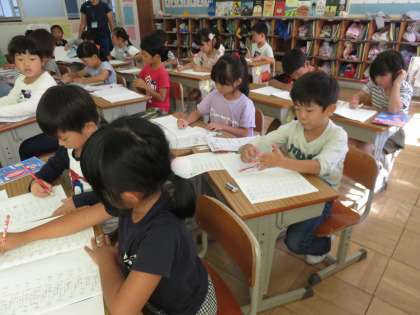 3つのかすの計算(例:8−3+2= )の計算練習問題をしていました。しっかりできたかな?