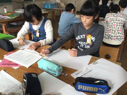 「片耳の大シカ」「月の輪グマ」のお話を聞いて、印象に残った部分をかいていました。
