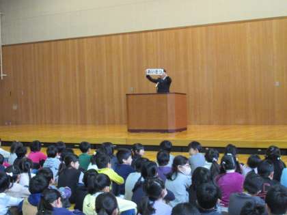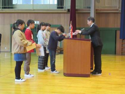今日の朝会は、作文や習字などたくさんの表彰がありました。校長先生からは、あいさつの大切さについてのお話がありました。廊下で出会ったときの「こんにちは」のあいさつで、もっともっと過ごしやすい南粕谷小にしていきましょう!