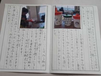 国語の時間に作ったクラブ活動リーフレットが完成しました。自分で撮った写真を使って、上手にまとめることができました。