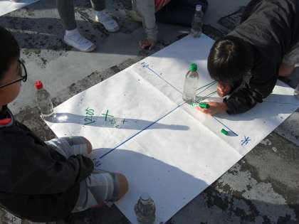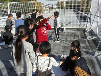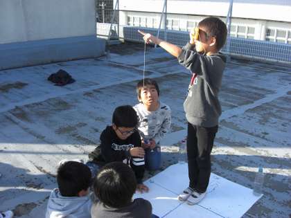 今日の理科では、太陽の動きと影について観察しました。普段は上がることのない屋上でしっかり学習できました。