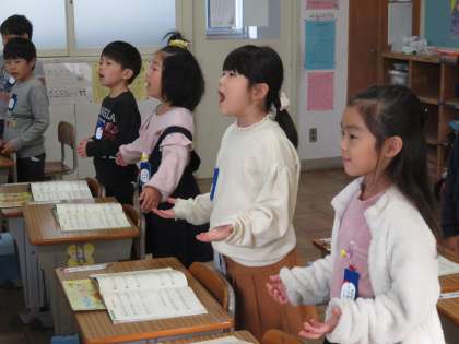 「どんなゆめ」「おとのマーチ」をリズムに乗って、楽しく歌っていました。みんな、かわいいです。