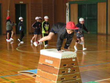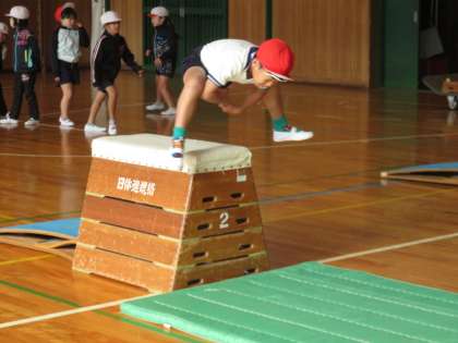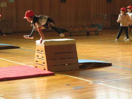 開脚跳びの練習をしていました。しっかりした踏み切りから、きれいなフォームで、開脚跳びをする子もいました。