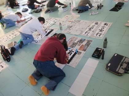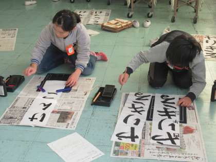 1月の書き初めに向けて、ふれあいルームで練習をしました。自分の目標を表す言葉です。心を込めて書けたかな。