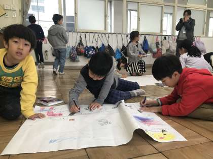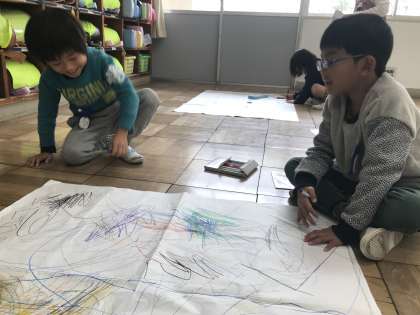 一年生は学習室でお絵かきをして、落ち着いて過ごしていました。