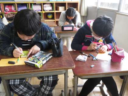 図案を考えて、ハンコ作りを始めます。すてきなハンコができると、いいですね。