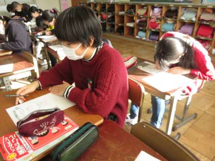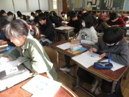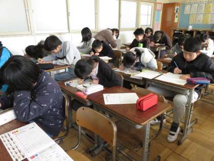 教室はしーんと静まりかえっていました。さすが6年生。3学期の目標を書いていました。