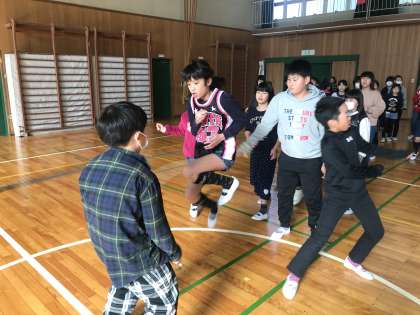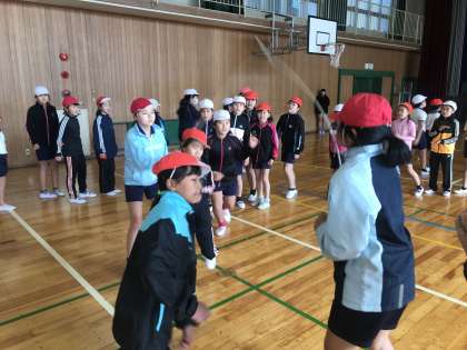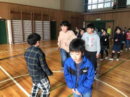 今日は4年生と5年生が体育館を使って大縄の練習をしていました。