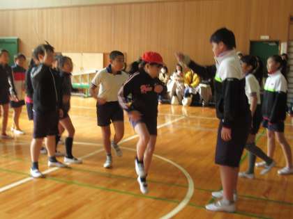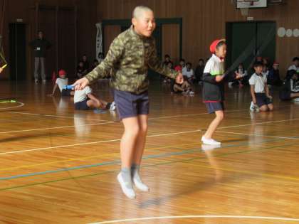 高学年の様子です。二重跳びやはやぶさ跳びなど、とても高度な技をクリアする子もいました。さすがです!