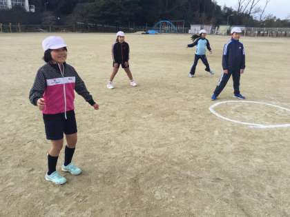 キャッチボールをした後に、ハンドベースボールの試合をしていました。