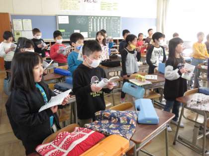 なかよしルームに移動かと思いきや、教室で音楽の授業をしていました。あれ?放課の動きは、何だったの・・・?