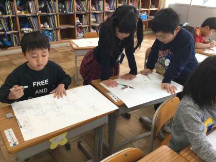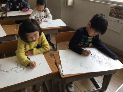 一年間をふりかえって、楽しい思い出を絵に表していました。