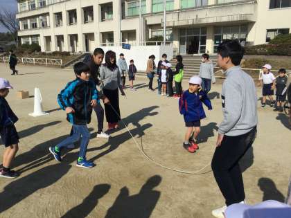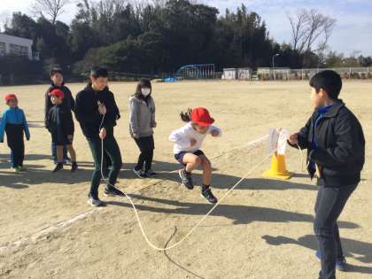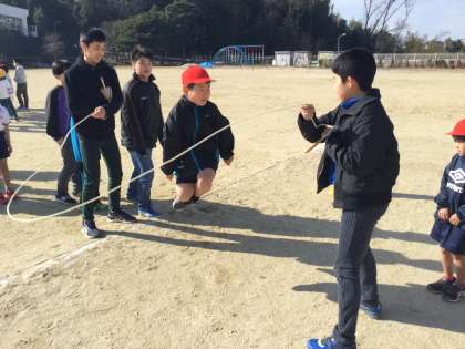 なわを回す人やペアの6年生が一年生を上手にとばせていました。