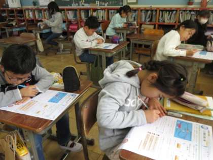 単元「電流の通り道」のまとめのテストを行っていました。みんなできたかな?