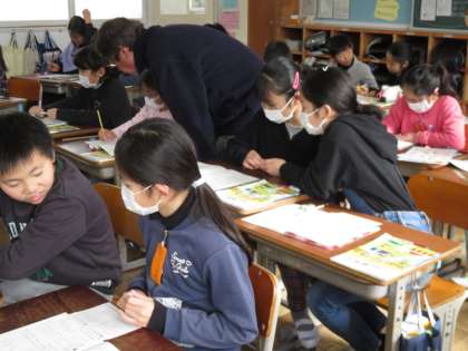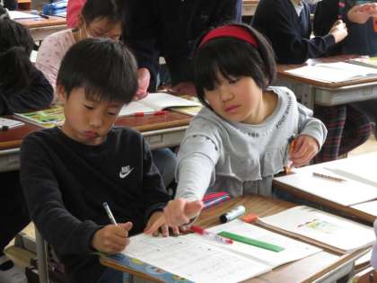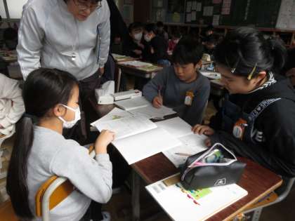 帯分数の計算の仕方を、友だちと一緒に考えました。話し合う表情、いいですね。