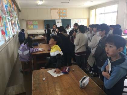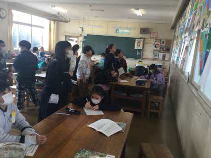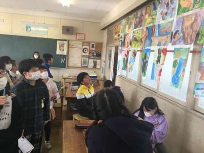 読書感想画の作品が完成したので、友達の作品のよいところを見合いました。