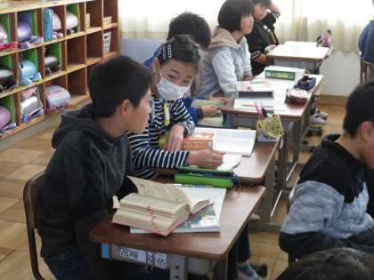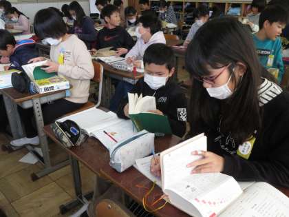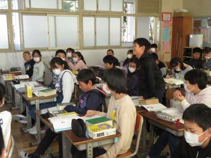和語+和語、漢語+漢語、外来語+外来語、和語+漢語、和語+外来語、漢語+外来語の複合語を探しました。探した複合語を発表するとき、楽しい雰囲気が、教室に充満していました。