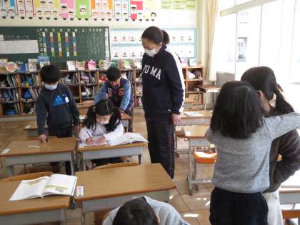 1時間目終了。換気のため、窓を開けていました。インフルエンザの予防のためですね。