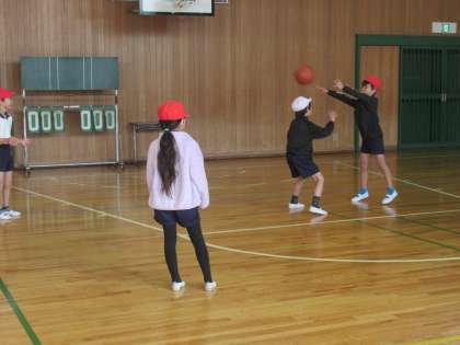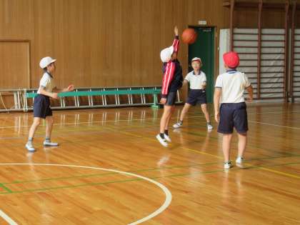 相手のパスを防ぐ動きを練習しました。4人グループに分かれて、順番にパスをカットする動きを確認していました。