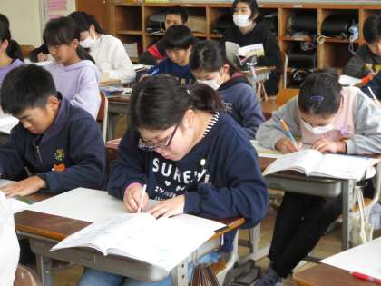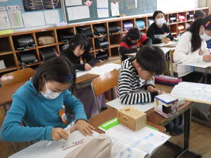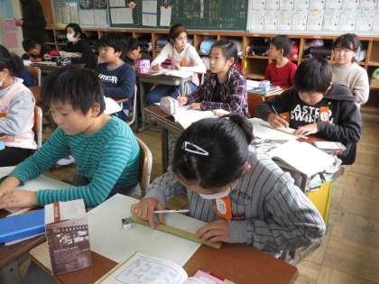 直方体と立方体の単元です。方眼用紙に直方体の展開図をかいていました。教科書通りにかけたかな?