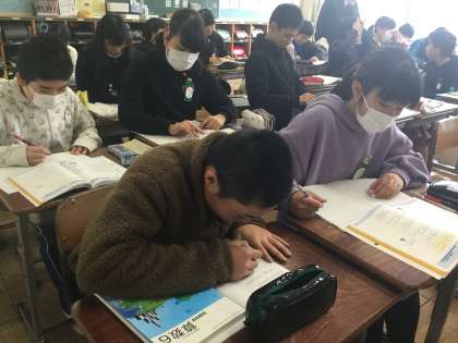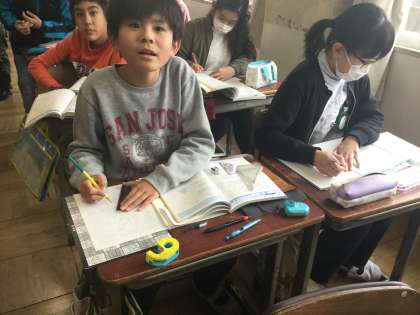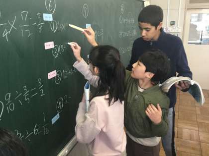 黒板に答えを書いて、合っているかどうかたしかめました。