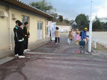 今日は、旭南中のみなさんがあいさつ運動に来てくださいました。先輩から南粕谷小のみんなのあいさつの様子を褒めていただきました。これからも続けていきたいですね。