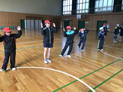 ダンスの手本の動画を見ながら、みんなの前でダンスを披露していました。