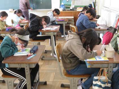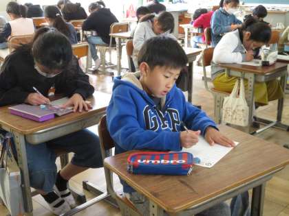漢字の小テストに真剣に取り組んでいました。間違えた漢字は、後でしっかり覚えておいてくださいね。