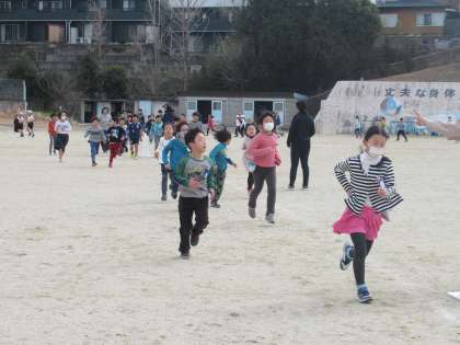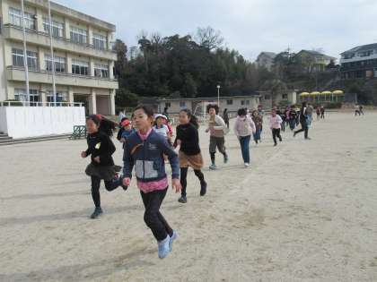今日の持久走は、汗ばむほどの暖かさでした。みんな元気にがんばりました。